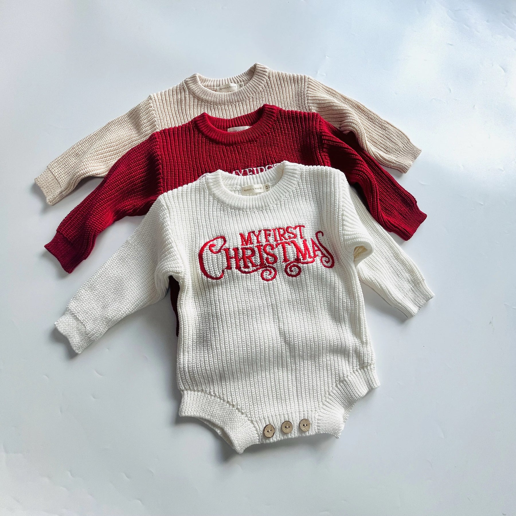 Vier je baby's eerste kerst in stijl met onze mega leuke speen & koord sweater romper!